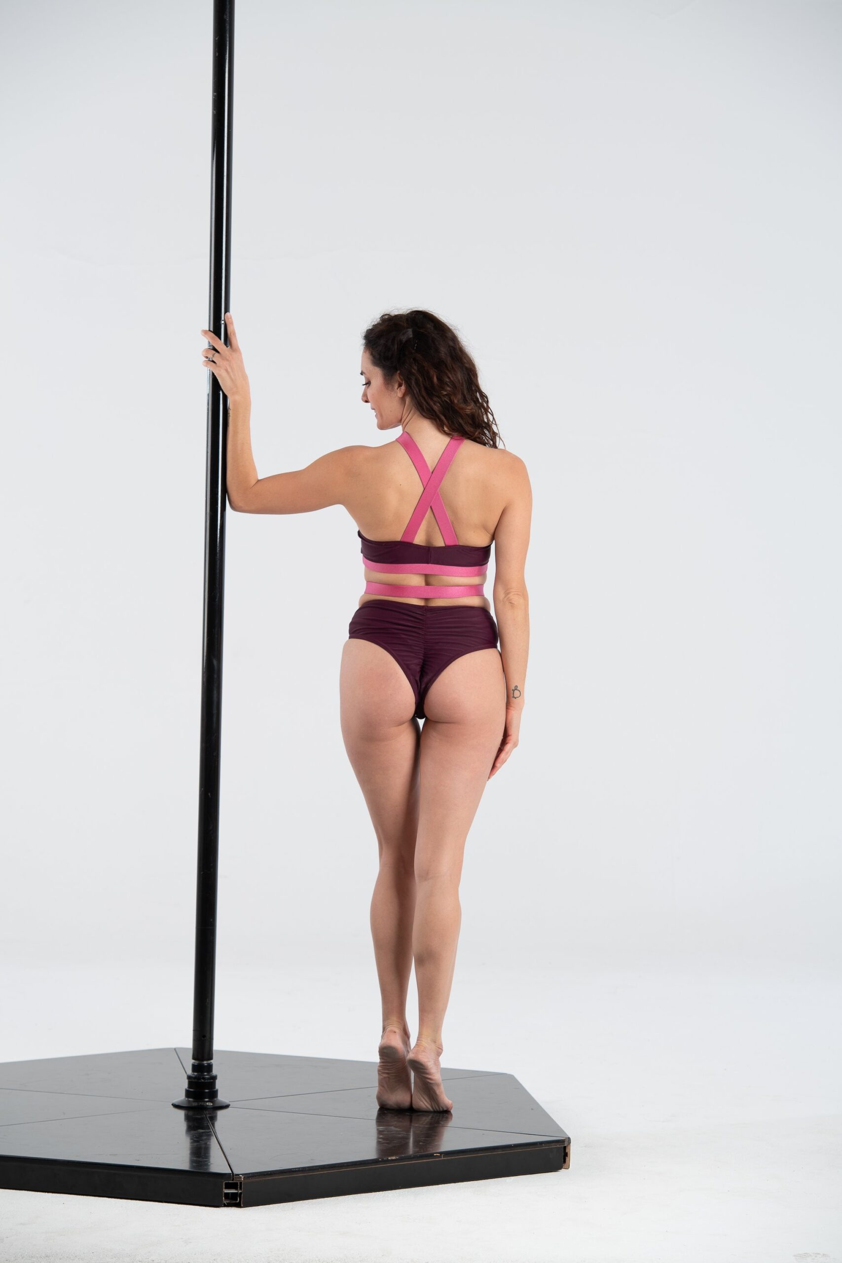 Completo formato da top e short in lycra con arricciatura posteriore e anelli di metallo