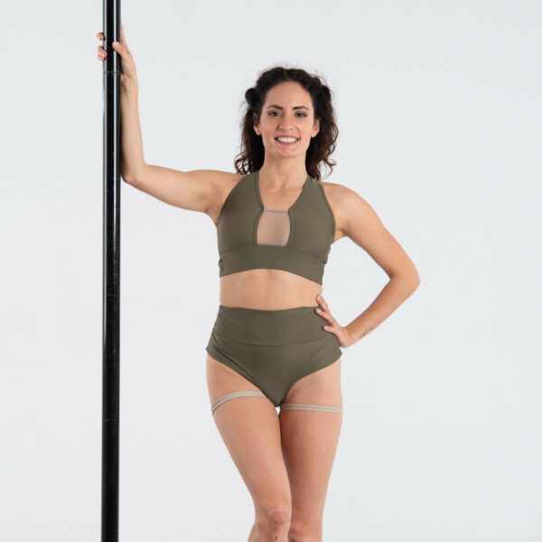 Body monospalla in lycra fantasia con oblò laterale