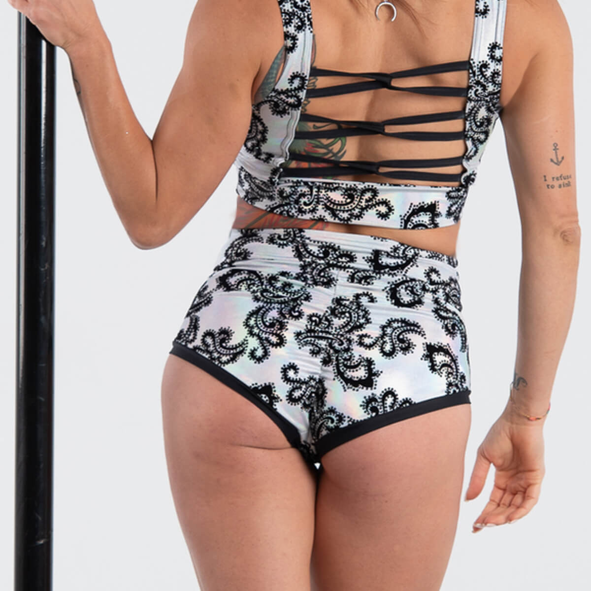 Completo formato da top e short in lycra con arricciatura posteriore