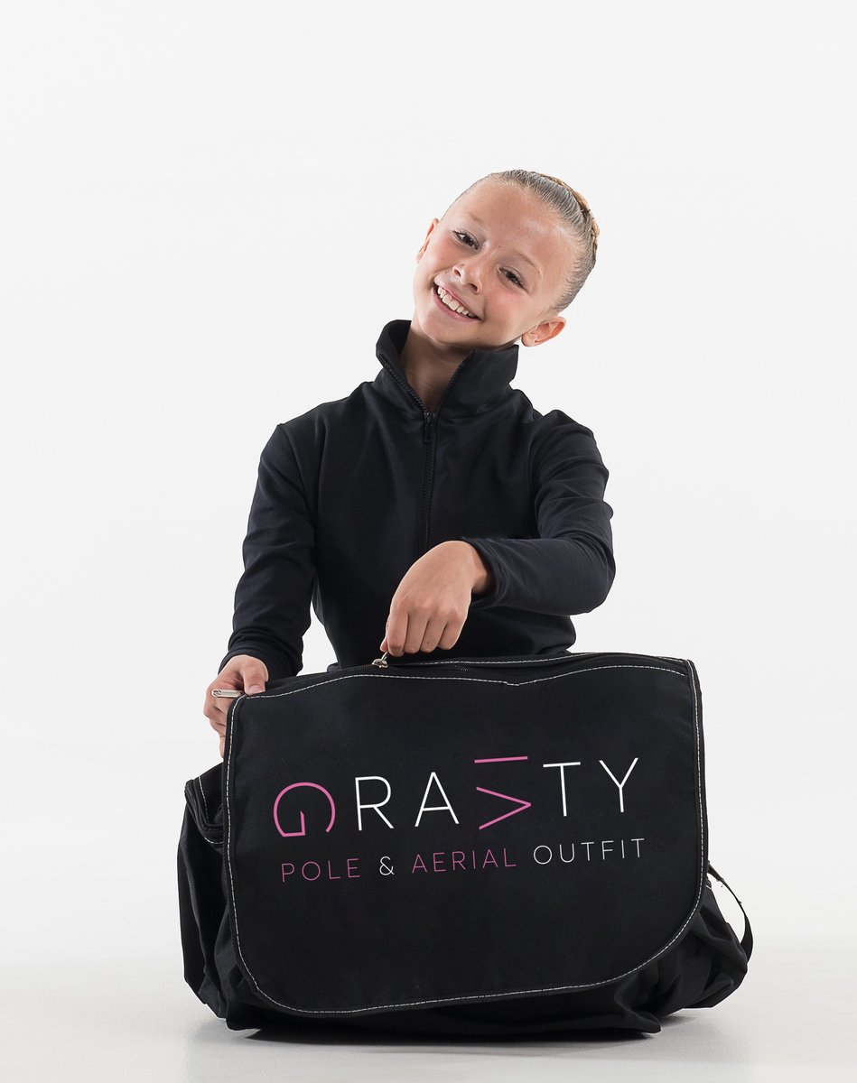Borsone in poliestere con maniglie centrali, tracolla e tasche laterali