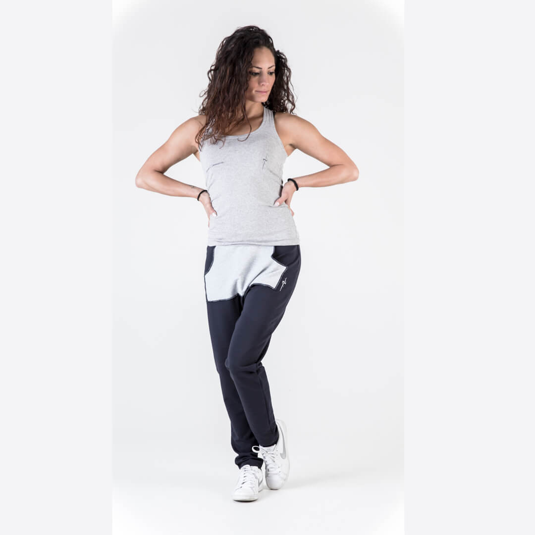 Pantalone in felpa di cotone bi-elastico con tasche in contrasto.