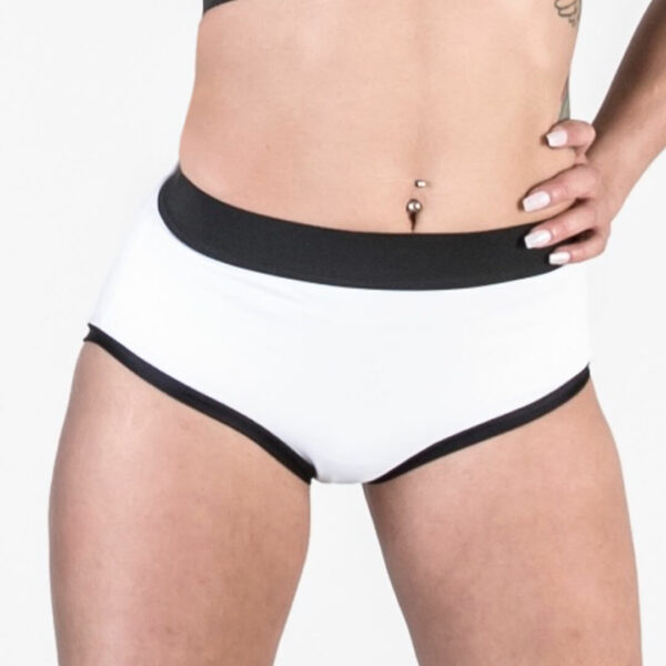 Short a mutanda in lycra fantasia con arricciatura posteriore e inserti laterali in siviglia.