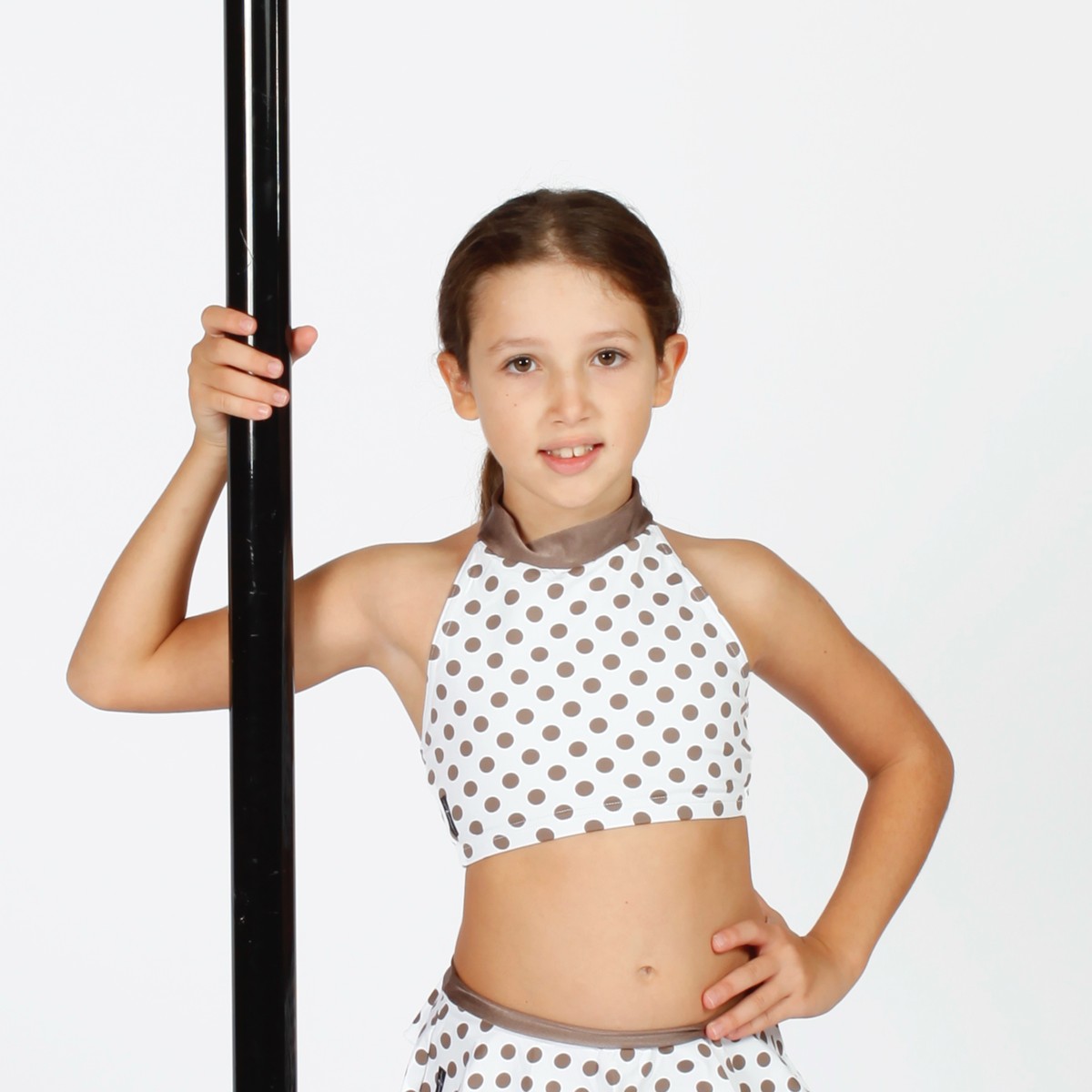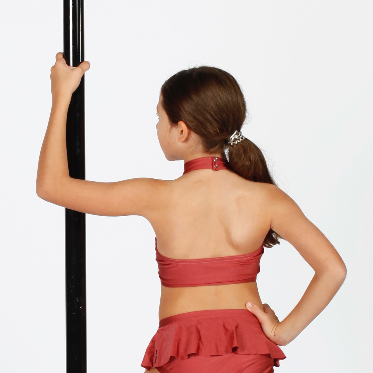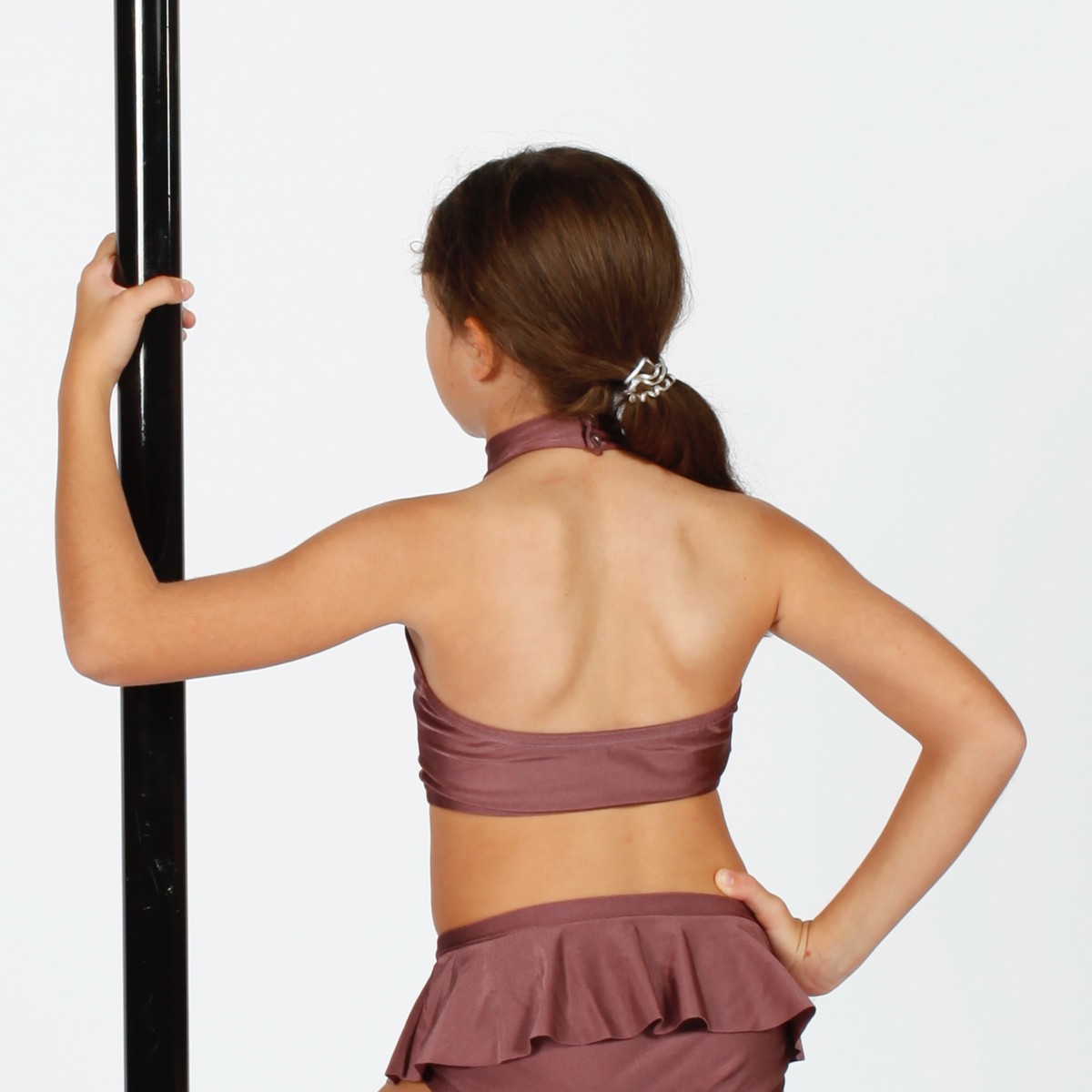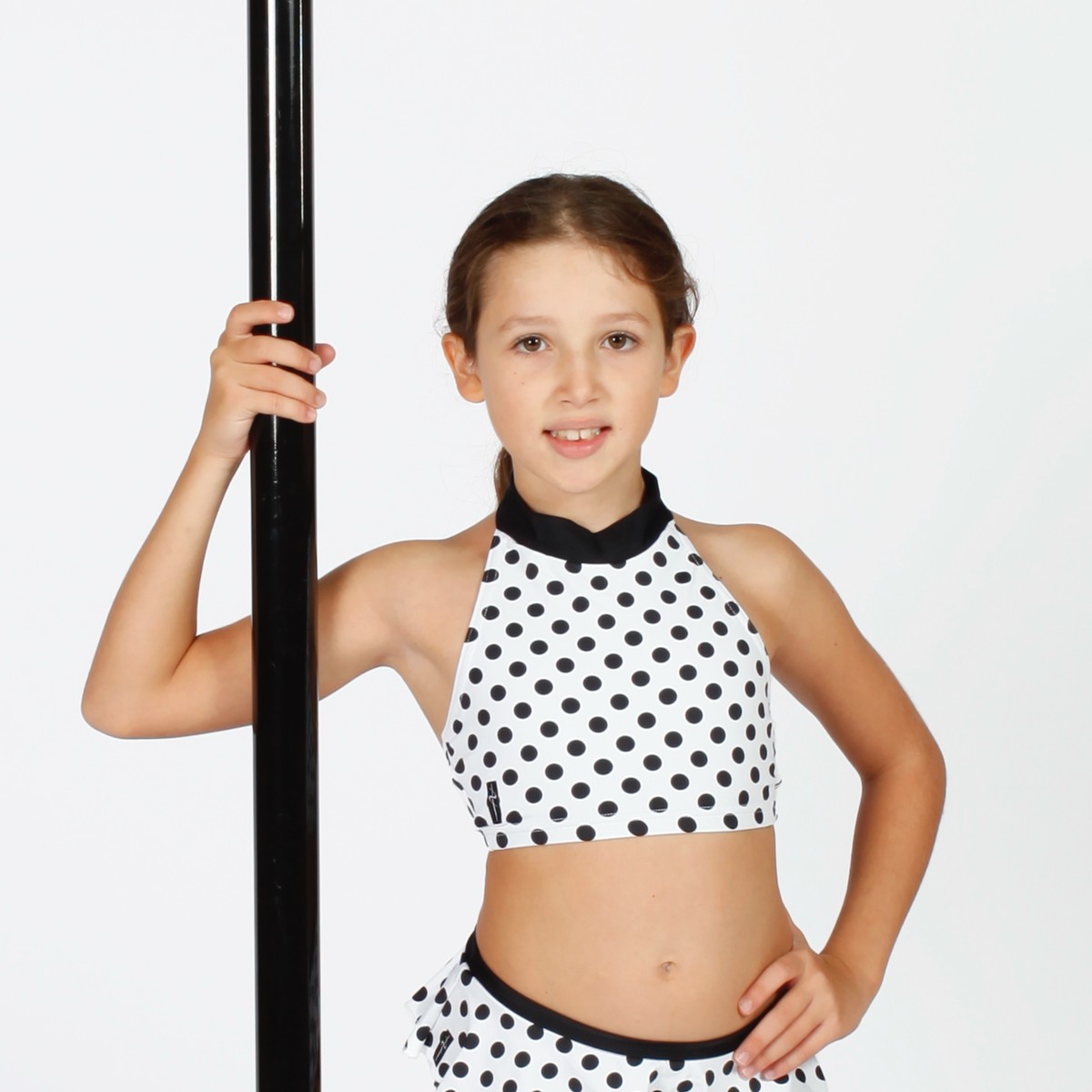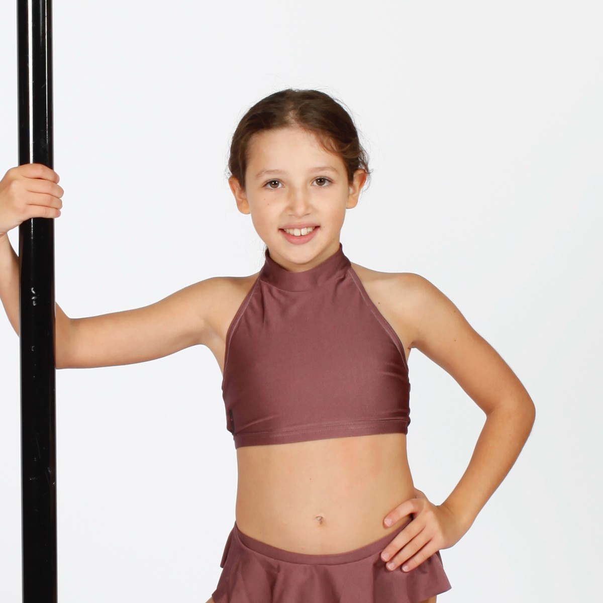 Top in lycra accollato con chiusura al collo.