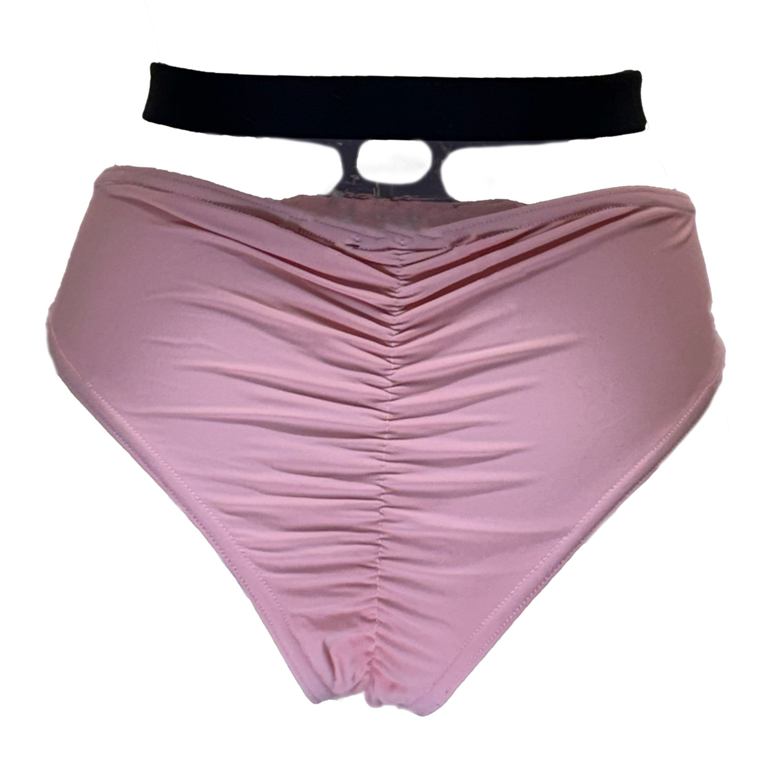Short in lycra con arricciatura posteriore e anello di metallo.