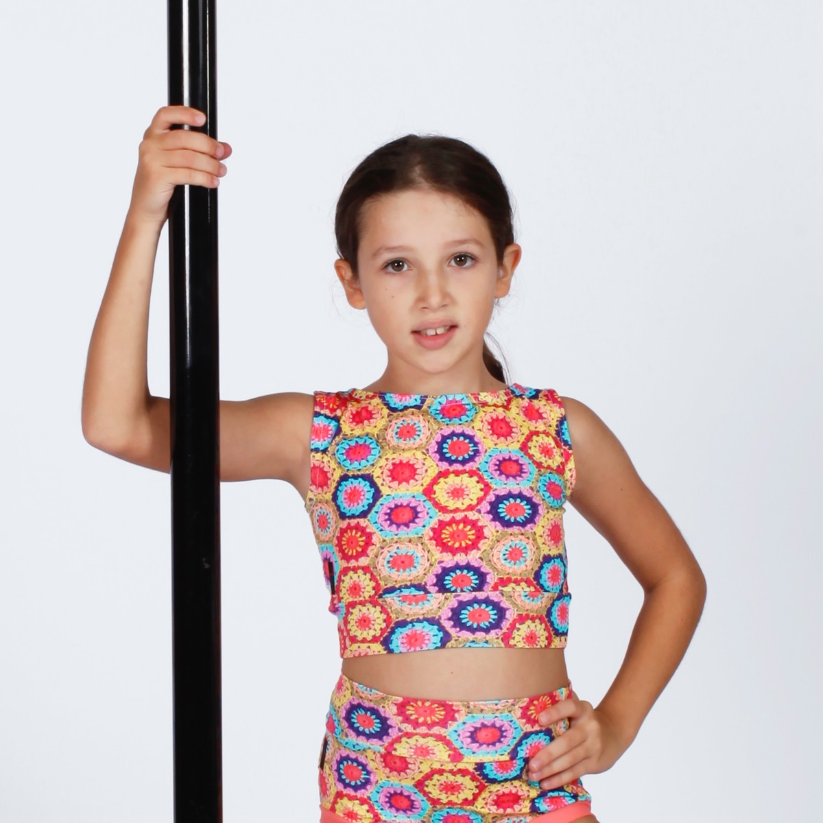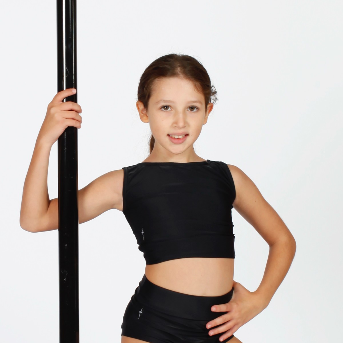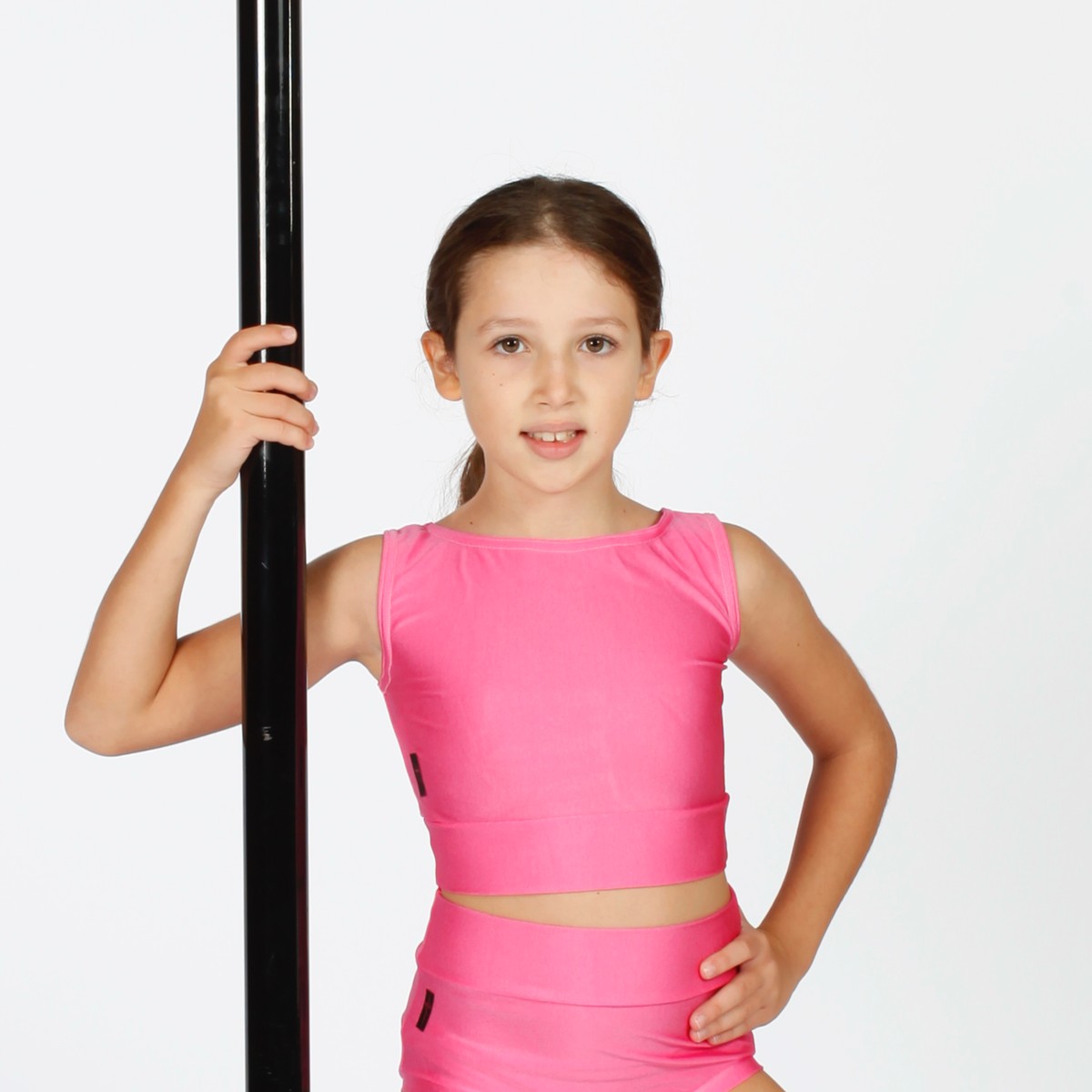 Top in lycra accollato con intrecci nella zona dorsale.